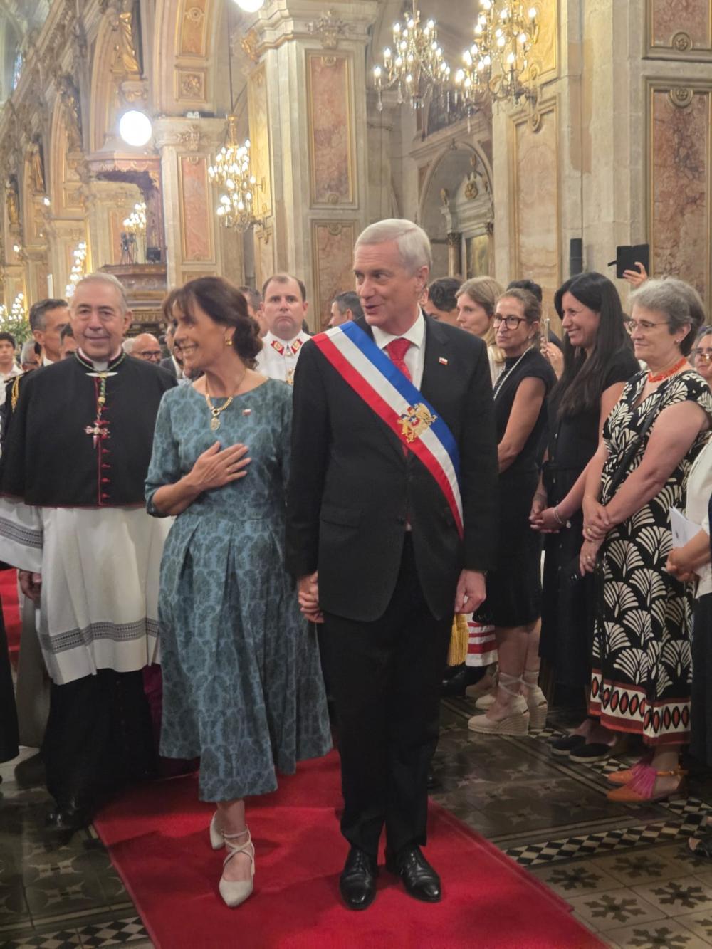 La ceremonia concluyó con una oración final por el país, la bendición del arzobispo de Santiago y la entonación del Himno Nacional de Chile. Tras ello, el cardenal Fernando Chomali, junto al deán de la Catedral, monseñor Héctor Gallardo, acompañaron al Presidente de la República y su familia hasta el Santuario de la Virgen del Carmen, ubicado en la parroquia El Sagrario, a un costado de la Catedral, donde se arrodillaron con profundo amor y respeto a los pies de la imagen coronada.